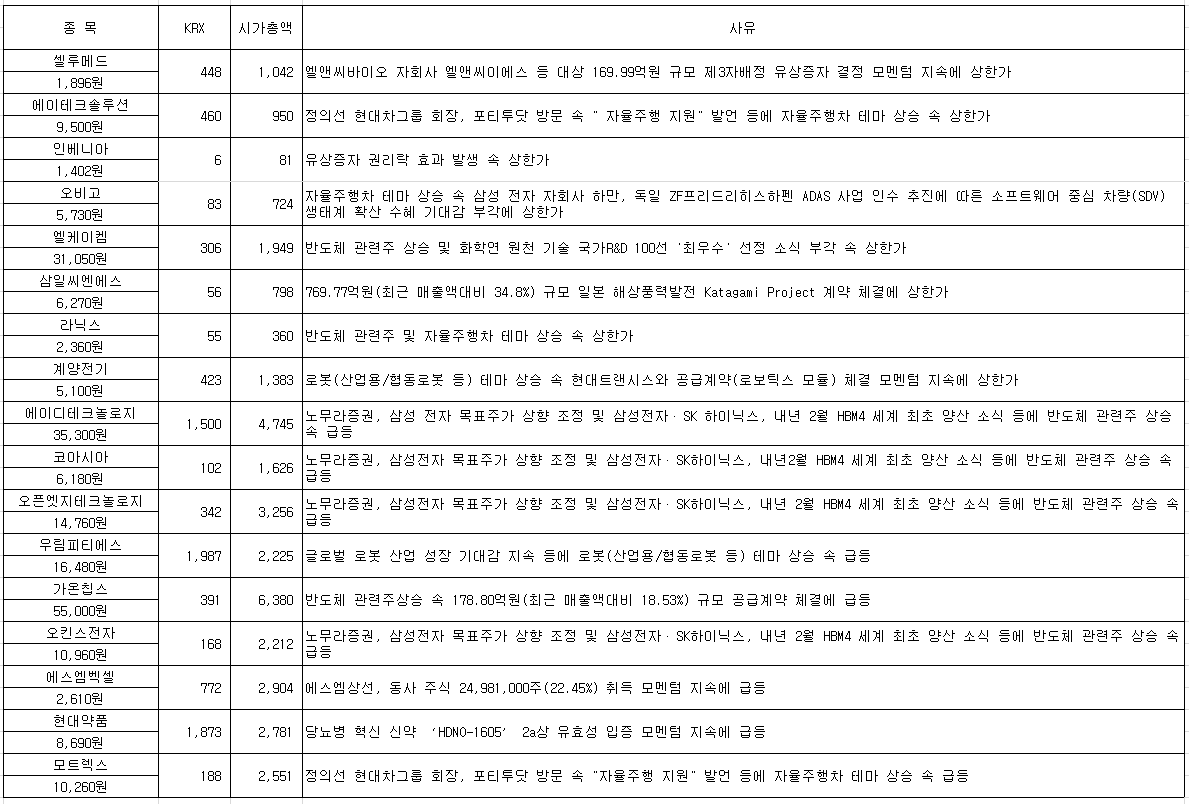 #셀루메드 #피플바이오 #우림피티에스 #에이테크솔루션 #켄코아에어로스페이스 #퓨런티어 #싸이토젠 #에스...