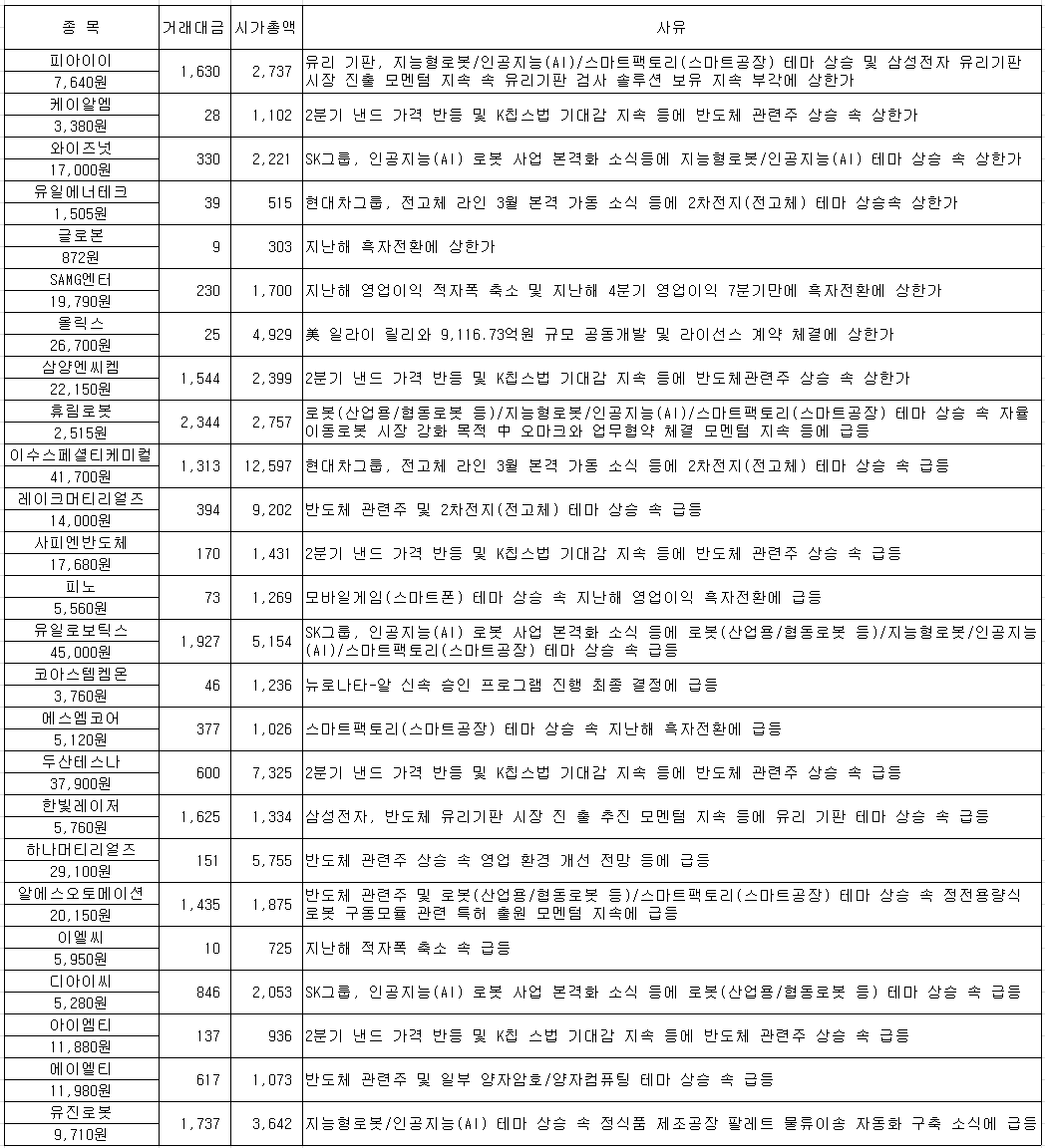 #어보브반도체 #아모센스 #전진건설로봇 #피아이이 #대동기어 #심텍 #에이엘티 #에스오에스랩 #올릭스 #제...