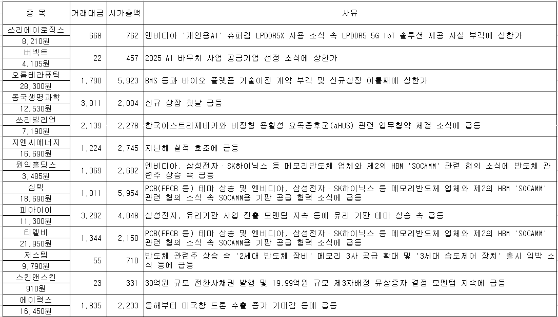 #티엘비 #마이크로컨텍솔 #코리아써키트 #삼익THK #에이치브이엠 #네오셈 #맥스트 #아이언디바이스 #오...
