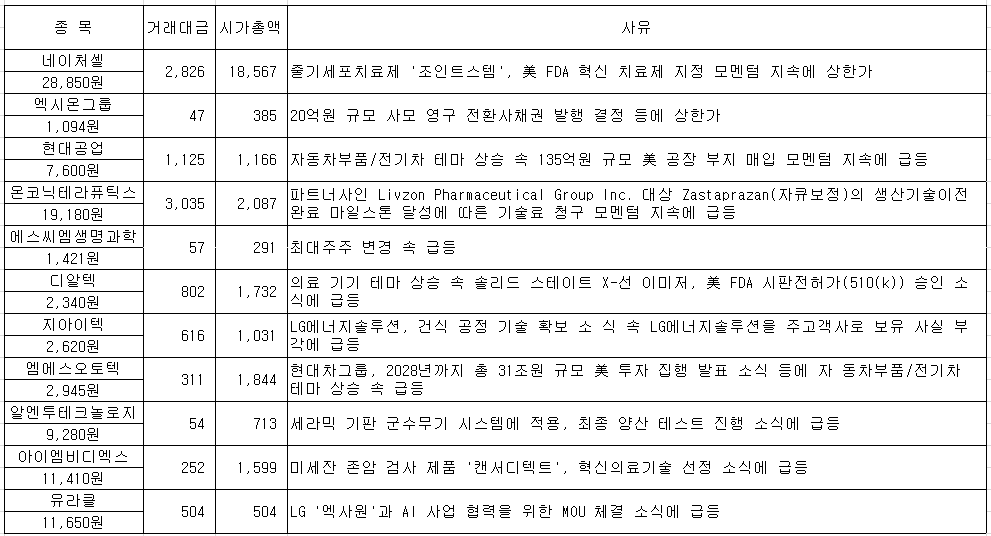 #와이오엠 #STX그린로지스 #네이처셀 #휴니드 #HLB제약 #브릿지바이오테라퓨틱스 #지엔코 #아이씨에...