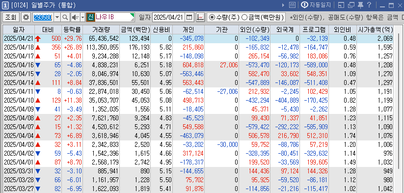 2025년 4월 21일 거래대금 2243