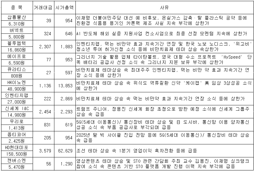 #신라젠 #삼륭물산 #골드앤에스 #옵트론텍 #버넥트 #지엘팜텍 #에스퓨얼셀 #바이오스마트 #위너스 #이원컴...