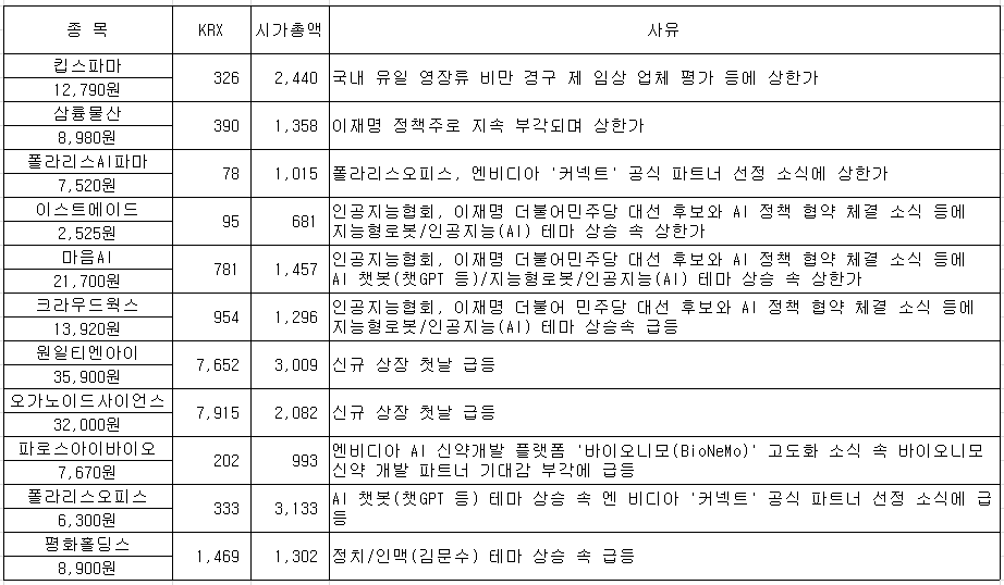 #상지건설 #평화홀딩스 #에코아이 #블루엠텍 #대호특수강 #나우로보틱스 #에이피알 #메타바이오메드 #영흥 ...