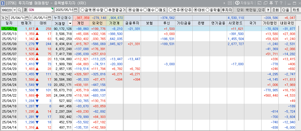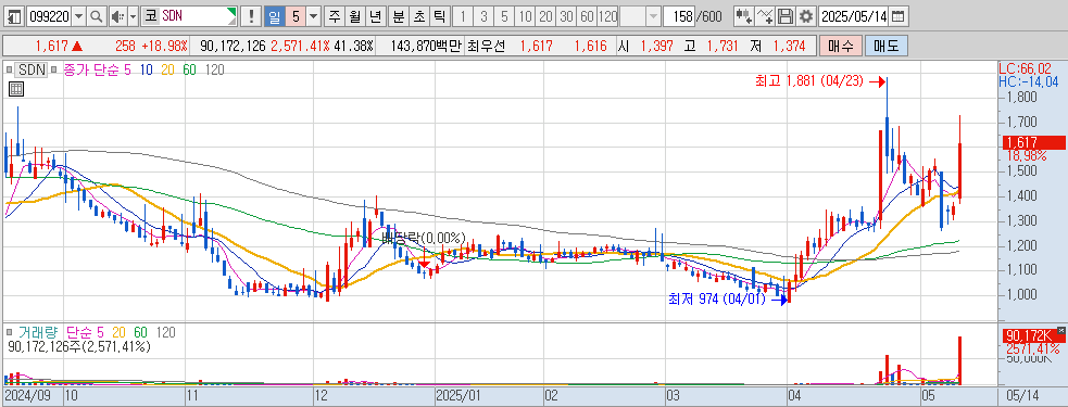 美 IRA 수정발의로 재생에너지 정책 리스크 해소 및 이재명 더불어민주당 대선 후보 재생에너지 공약 수혜 기대감 등에 태양광에너지 테마 상승 속 급등