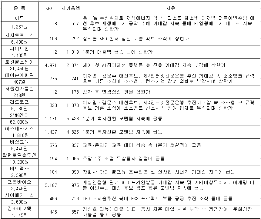 #유진로봇 #플라즈맵 #한진칼 #파루 #대성파인텍 #로보티즈 #HD현대에너지솔루션 #SAMG엔터 #메디콕...