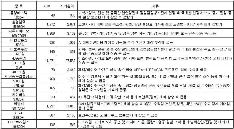 2025년 9월 10일 관심 종목
